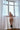 Two standing pictures that are representative of her Brown skin tone, seen in soft yellowish bulb light.