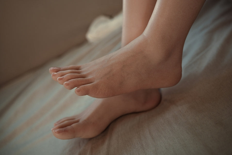 This is the most popular and common option within the sex doll market. Standing is a necessary feature for taking photos. It also makes it easier for storing and, of course, adjust sex positions ! Customers who are new to sex dolls should definitely experience a standing sex doll. Because soles of the feet are soft and unstable, dolls without a standing feature can only be laid down. If you try to stand a non-standing sex doll on its feet, the weight of the upper body would create downward pressure and damage them. This issue is resolved with a standing doll. Three (very small) metal bolts are added for support and bear the weight. Below is a simple diagram of the metal plates installed inside the doll's feet.